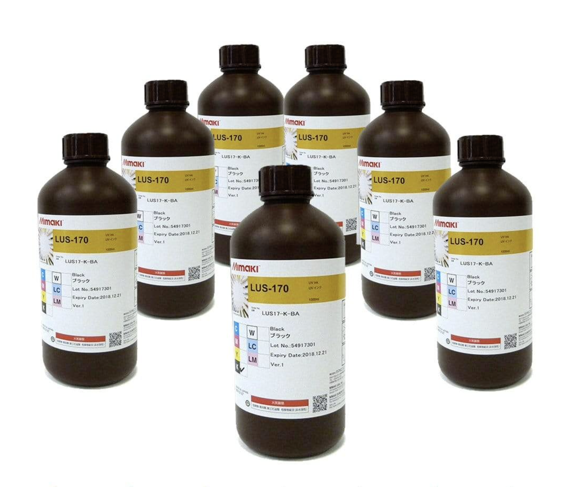 LUS-170 UV Curable Ink for Mimaki UCJV printers – 1 liter bottles with ink chip (Mimaki part number I-LUS17-X-BA-1)